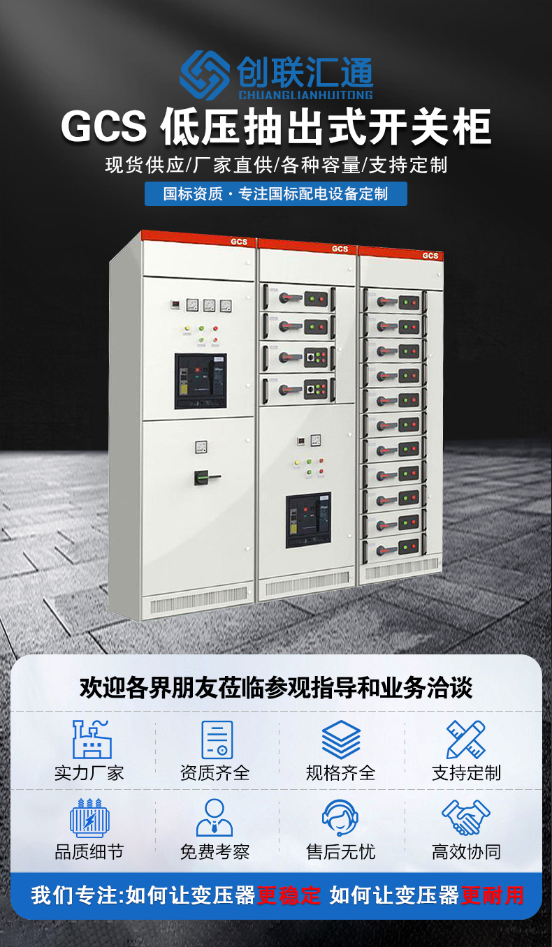 GCS型低压抽出式开关柜是两部联合设计组根据行业主管部门、广大电力用户及设计单位的要求设计研制出的符合国情、具有较高技术性能指标、能够适应电力市场发展需要并可与现有引进产品的低压抽出式开关柜。