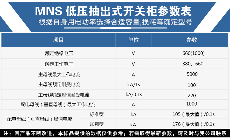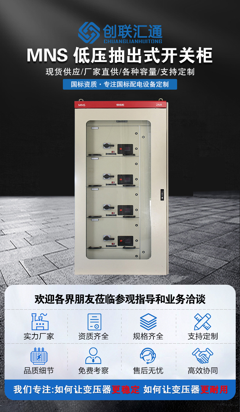 MNS型低压抽屉式开关柜适用于三相交流50、60Hz,额定电压660V,额定电流4000A以下的三相四线制及三相五线制电力系统,作为接受电能和分配电能之间。MNS柜也被称为MNS抽屉柜或者MNS配电柜。