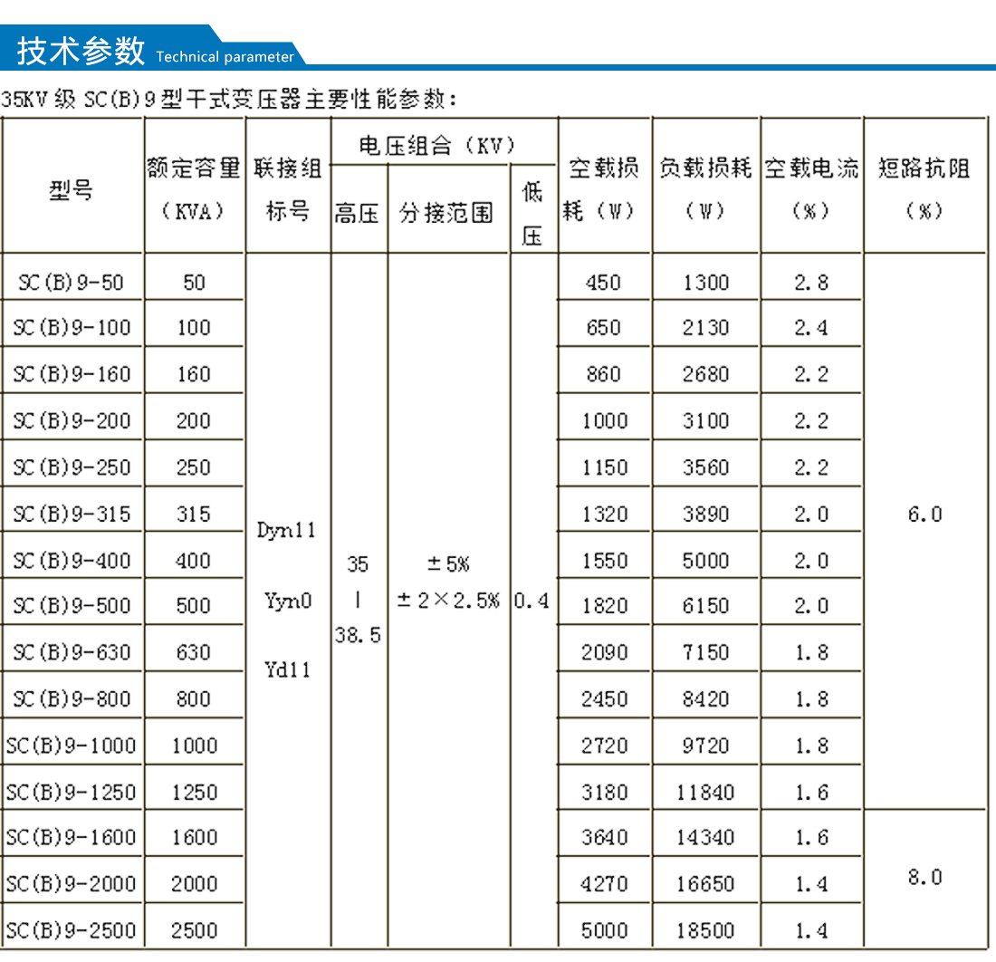 干式变压器冷却方式分为自然空气冷却(AN)和强迫空气冷却(AF)。自然空冷时,变压器可在额定容量下长期连续运行。强迫风冷时,变压器输出容量可提高50%。适用于断续过负荷运行,或应急事故过负荷运行;由于过负荷时负载损耗和阻抗电压增幅较大,处于非经济运行状态,故不应使其处于长时间连续过负荷运行。