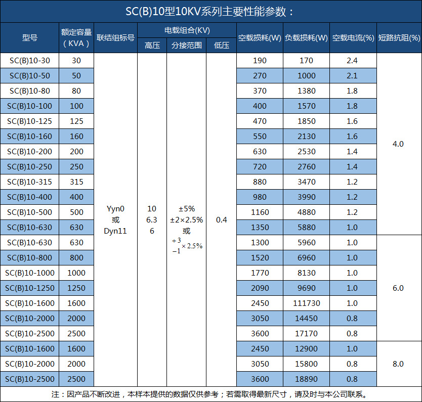 铁芯:铁芯选用进口优质冷轧硅钢片,三阶全斜接缝结构,芯柱采用F级无纬带绑扎,铁芯表面采用环氧树脂包封,降低了空载损耗,空载电流和铁皮噪声,夹件和紧回件经特殊表面处理,使产品外观质量有了进一步提高。