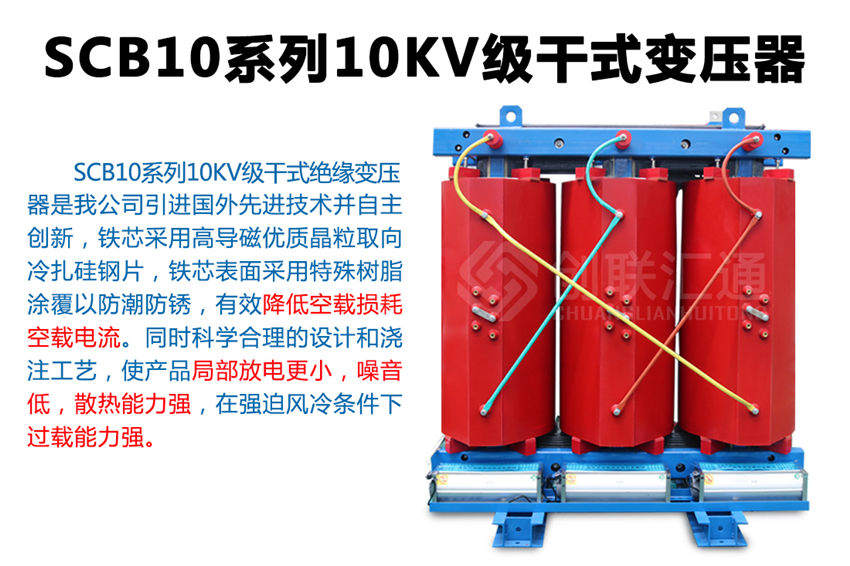 SCB10树质绝缘干式变压器是我公司引进外先进技术, 由于线圈被环氧树脂包封,所以难燃,防火体积小,可直接安置在负荷中心。同时科学合理的设计和浇注工艺,电小,噪声低,散热能力强,在强迫风冷条件下可以在125%额定负载下长期运行,并配有智能温控仪,具有故障报警,超温报警,朝闻挑着,以及黑匣子功能,并通过RS485串口与计算机相连,可以集中监视和控制。
