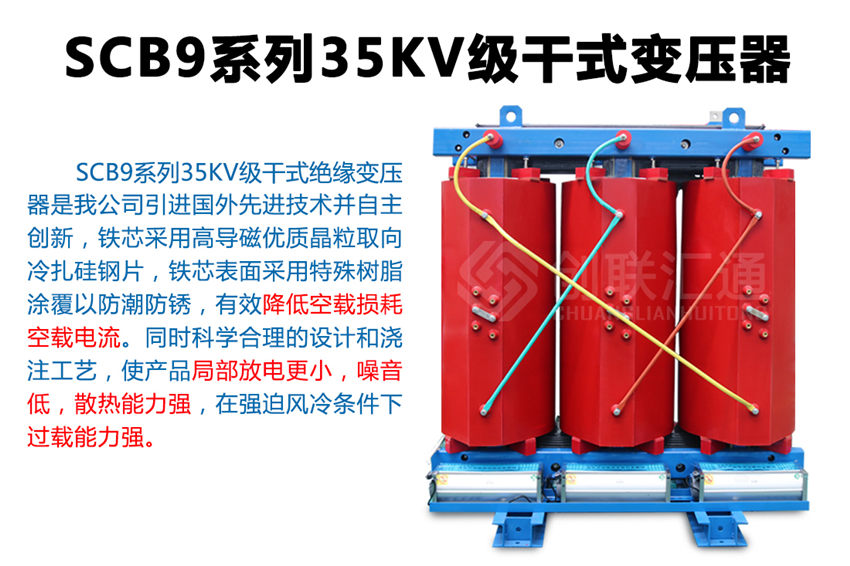 SC(B)9系列35KV环氧树脂干式变压器新一代节能产品,该系列配电变压器产品使用在变压器电压直接从35KV电网转变为400V配电的特殊场合,可减少10KV输变电环节,使运行维护费用明显降低。35KV级无励磁调压配电变压器产品通过了家级鉴定,确立为高新技术产品。 产品具有损耗低、阻燃性好、承受短路能力强、体积小、噪音低、耐雷电冲击性能好,温度分布均匀等优点,而且由于环氧树脂干式变压器不使用变压器油,不会产生油污染,无爆炸危险。产品可作为配电变压器广泛适用于电力系统城网改造,也可用于高层建筑、机场、车站、港口、地铁待对消防、环保有严格、特殊要求的多种场合。