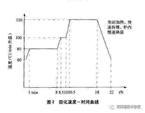浇注好的模具必需在固化炉内依照固化温度一时候曲线停止加热固化。进程中,需包管固化炉内温度平均。固化温度~时候曲线如图2所示。