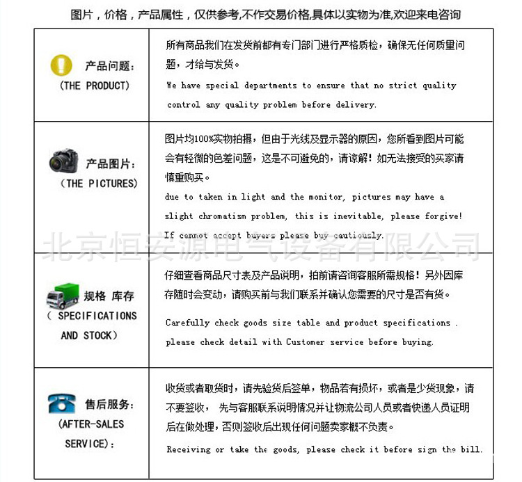 3、其他超出本技术条件规定的内容,由用户与我公司技术部协商处理,并在订货时注明。