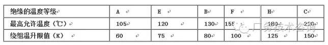 当采用E级绝缘材料时,其极限工作温度在120℃时,较高温升应小于75K;当采用B级绝缘材料时,其极限工作温度在130℃时,较高温升应小于80K;