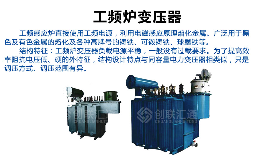 工频感应炉直接使用工频电源,利用电磁感应原理熔化金属。广泛用于黑色及有色金属的熔化及各种高牌号的铸铁、可锻铸铁、球墨铁等。 结构特征:工频炉变压器负载电源平稳,一般没有过载要求。为了提高效率阻抗电压低、硬的外特征,结构设计特点与同容量电力变压器相类似,只是调压方式、调压范围有异。