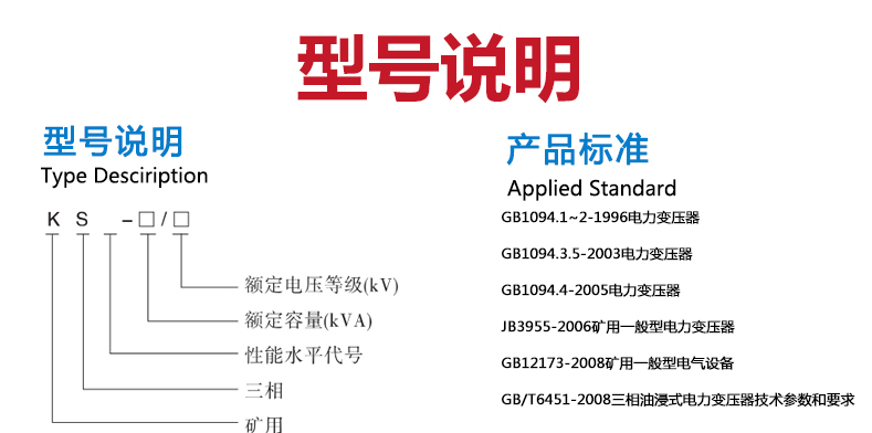 适用于容量630KVA及以下,电压为10KV及以下的油浸式矿用电力变压器。此类型矿用变压器是一般型油浸式变压器,并无防爆要求,主要作为矿井配电时的矿用照明或电力拖动的电源。凡本系列变压器经运输后,不需作吊心检查,即可装配有关拆卸的零部件,做验收试验项目。遵循标准.