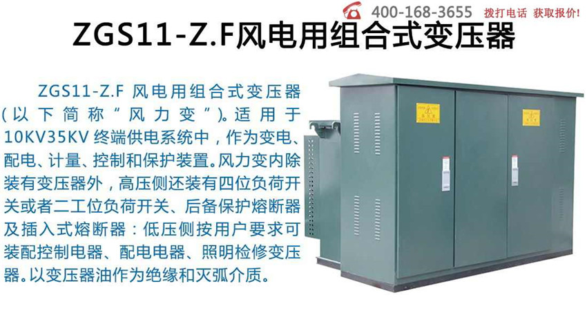 GS11-Z.F系列风力发电用组合式变压器适用于35k V终端供电系统,作为变电、配电、计量、控制和?;ぷ?置。
