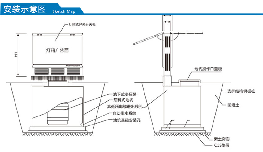 4、全地埋型预装式变电站的配电设备设置在地下,安全、可靠性高。
