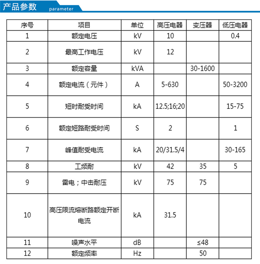 YBD-12系列地埋箱式变电站(简称地埋式箱变),是在充分研究和探讨现代城市建设和管理的基础上,新开发出的新一代箱式变。其主体部分或全部埋入地下,占地很少,甚至不占地,视觉效果非常好,有效解决了城市用地紧张和城市牛皮癣的矛盾,与周边环境和谐统一,备受广大专家和用户的推崇。地埋箱式变电站是指该箱式变电站的成套装置全部安装于一个全密封的箱体内部并把整体设制于地平面以下,它和地面上箱式变电站,内部设备是相同的,同样是由10KV输入电压经变压器降为400/220V配电电压再送配至使用负荷点,可用于环网配电系统,也可作为放射式电网终端供电的变电站。这种全地埋型又称地下变电站,它的箱体具有极好的防腐能力和抗压能力,并具有绝对的密封性。