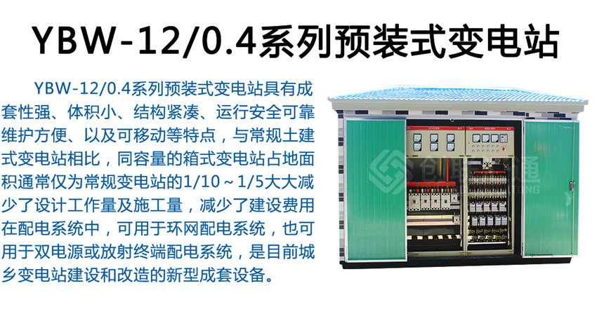 YBW-12系列预装式箱式变电站YBW-12系列预装式变电站,是将高压电器设备、变压器、低压电器设备等组合成紧凑型成套配电装置,箱体材料采用槽钢、铝合金与阻燃型复合材料制作而成。