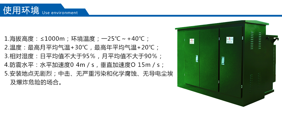 用于自然条件比较恶劣的海滩、草原、荒漠等无火灾、无严重污染、无化学腐蚀介质和粉尘、无爆炸性危险运行环境。应安装在水泥平台或其它平整、坚实的平台上。