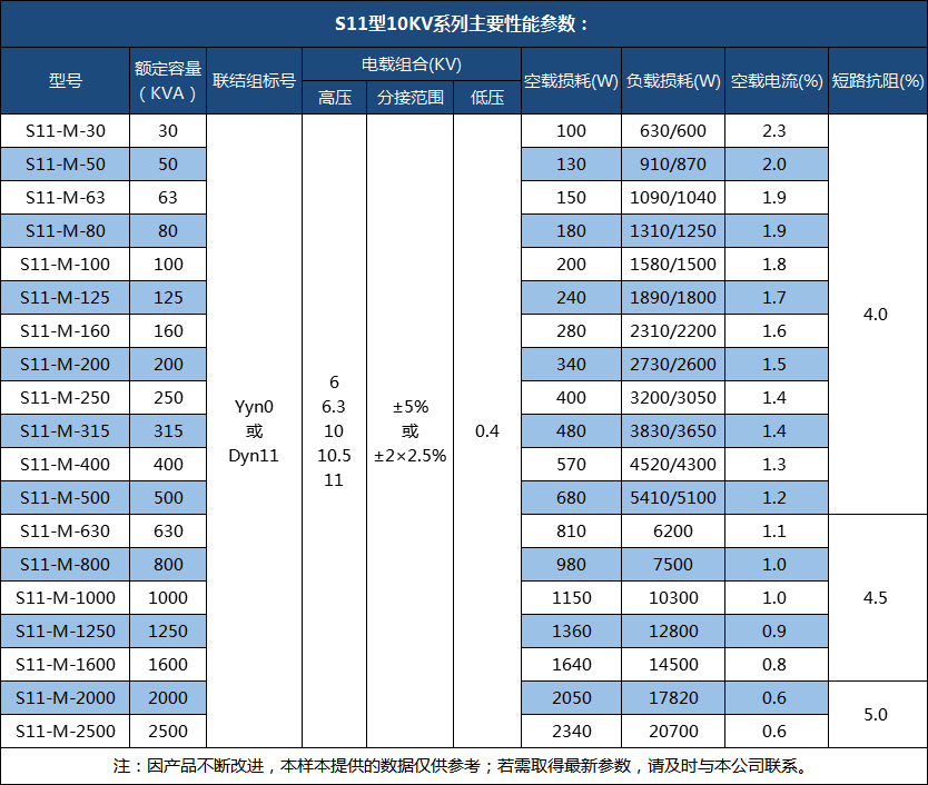 S11-315KVA油浸式变压器性能特点